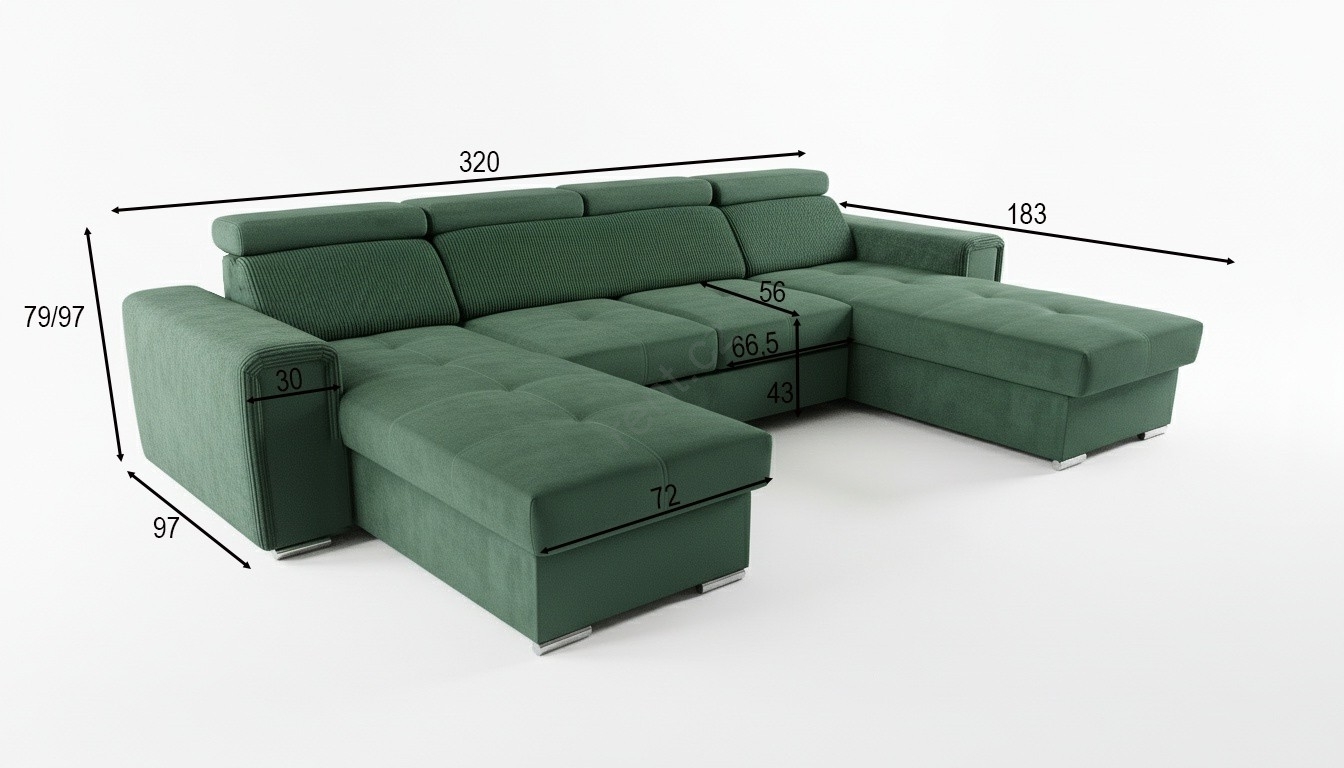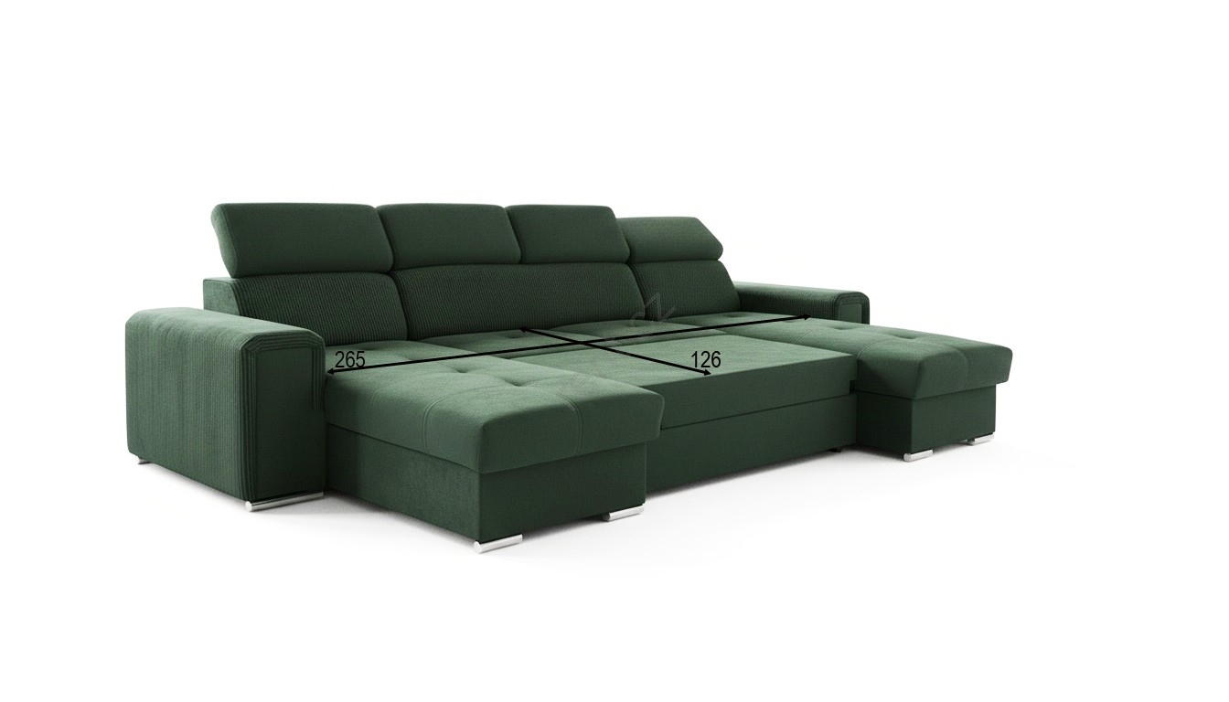 • Prostorná rohová sedací souprava tvaru U je ideální pro každodenní spaní a nabízí jak pohodlí, tak i stylový design.