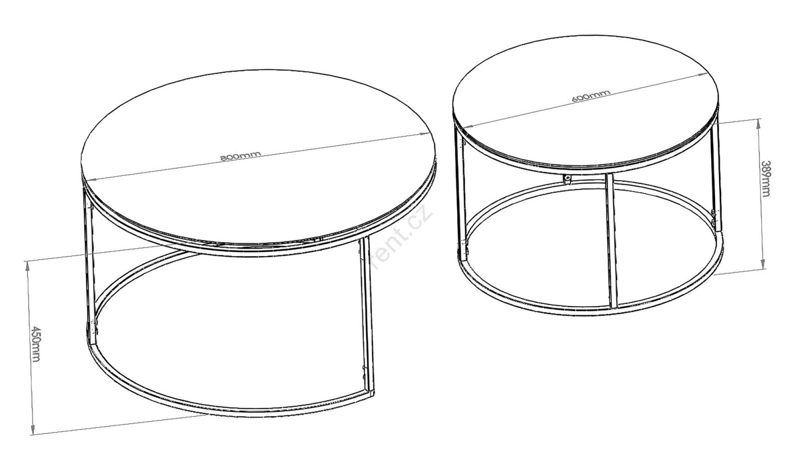 • Rozměry menšího stolku: 38,9 x 60 cm.
