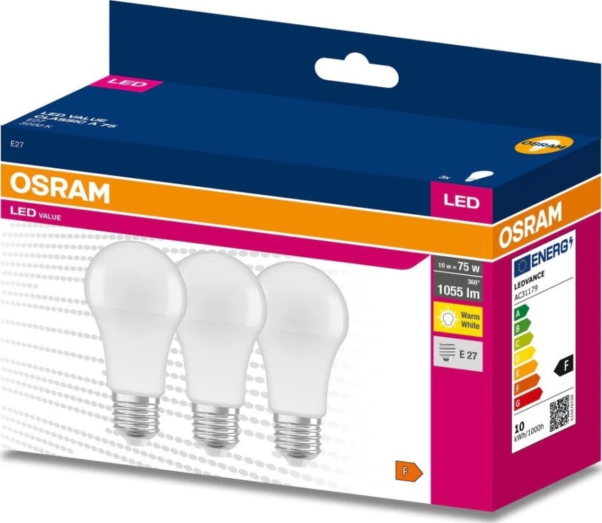 SADA 3x LED Žárovka A60 E27/10W/230V 3000K - Osram Kvalitní provedení zaručí dokonalé osvětlení vašeho interiéru. Kategorie E27 je věnovaná žárovkám se stejnou paticí. U nás si vyberete žárovky s tradičním vláknem nebo z mnoha moderních LED žárovek, které jsou energeticky úspornější a mají delší životnost.