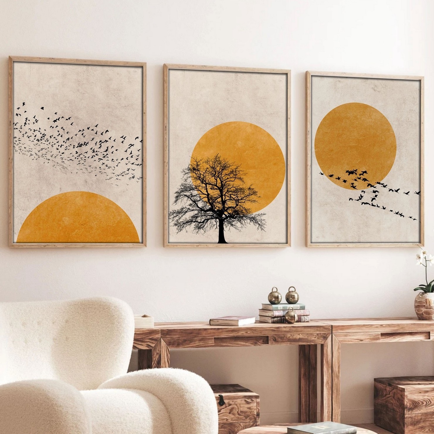 • SADA 3x Obraz ve fotorámečku 50x70 cm béžová/oranžová