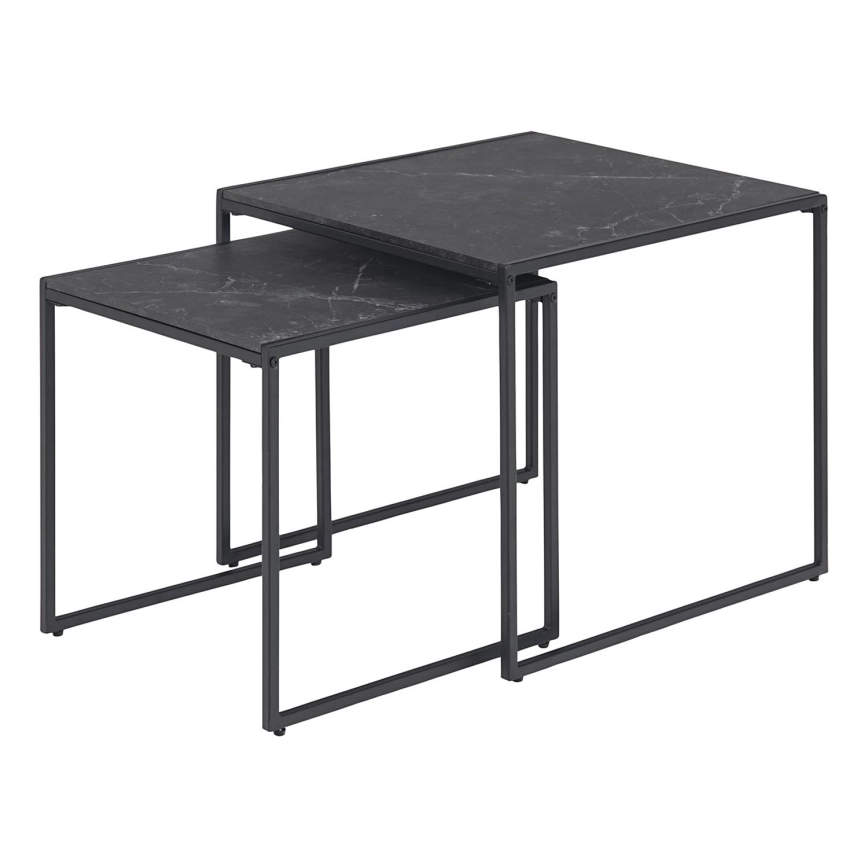 • Díky čistým liniím, mramorovému vzhledu a černému práškovému lakování jsou stolky vhodné téměř do každého obývacího pokoje.