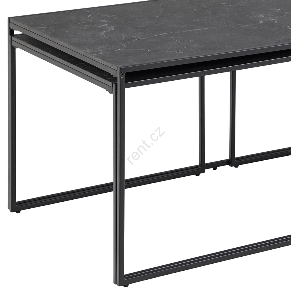 • Díky čistým liniím, mramorovému vzhledu a černému práškovému laku se set konferenčního stolku hodí téměř do každého obývacího pokoje.