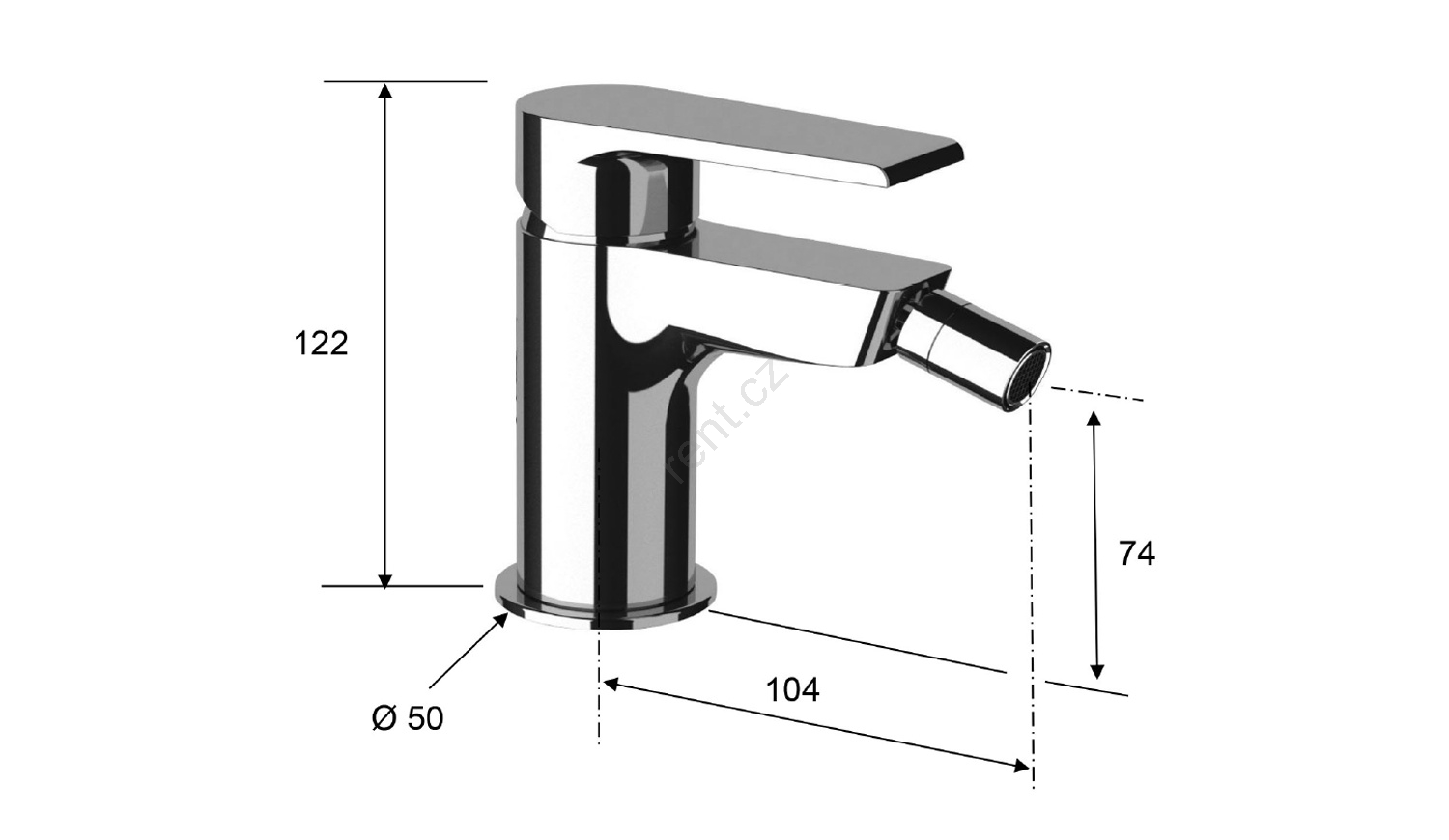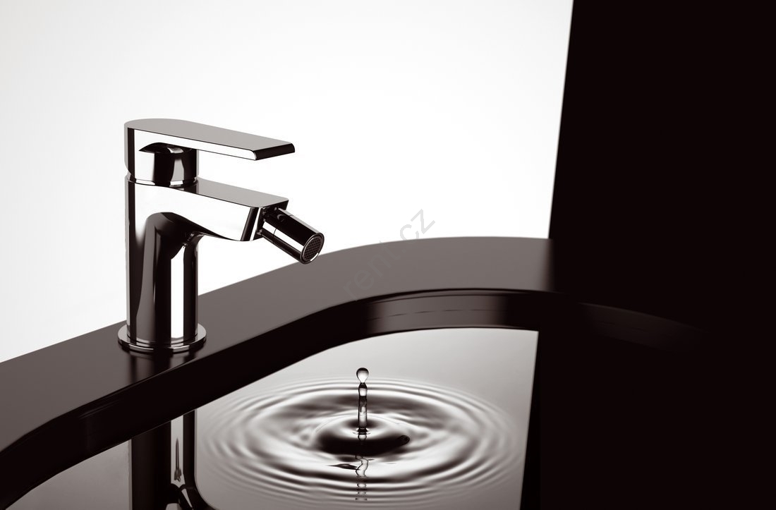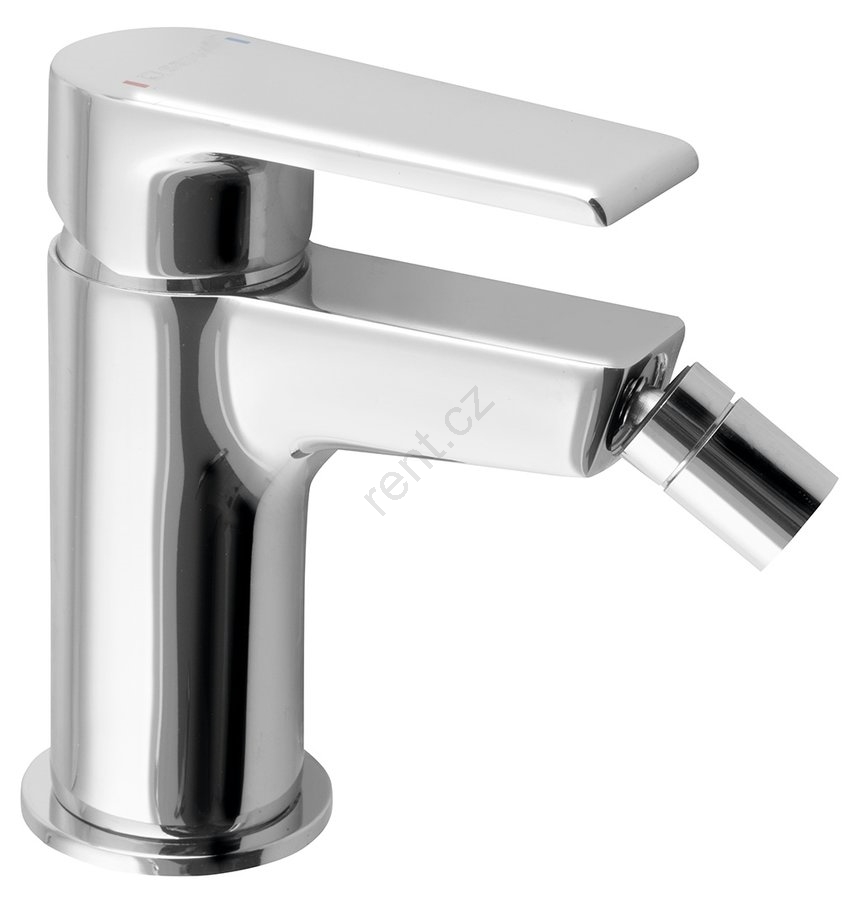 • Tato bidetová baterie má válcové tělo a hranatou hubici.