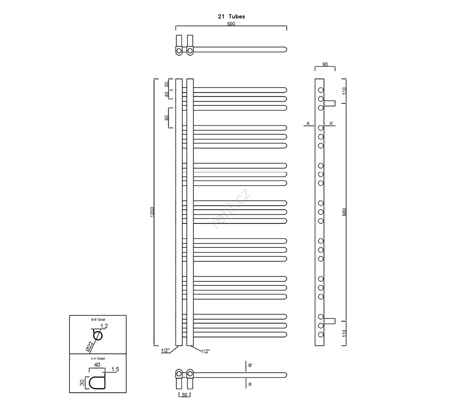 Sapho - Koupelnový radiátor DORLION 378W/230V 50x120 cm lesklý chrom