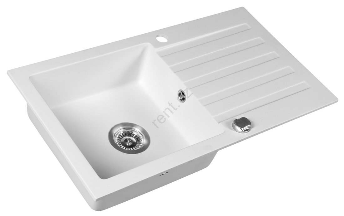 • Dřez je vyroben z granitu a má bílou barvu.