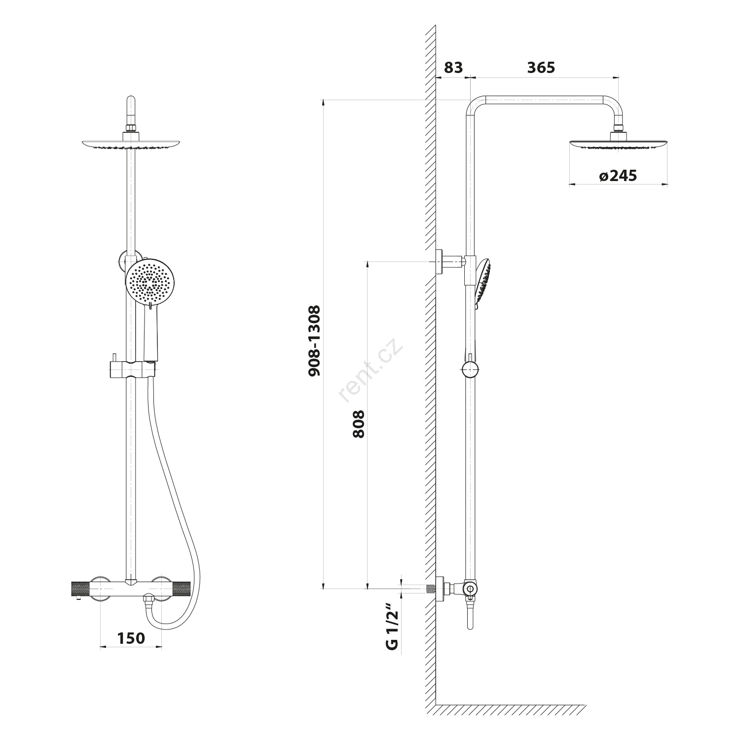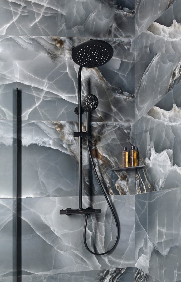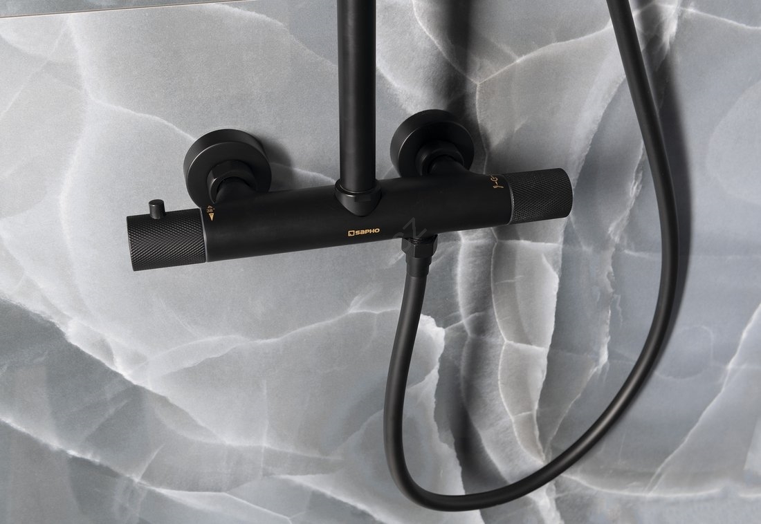 • Sprchový sloup má štíhlé linie a detaily v industriálním stylu.