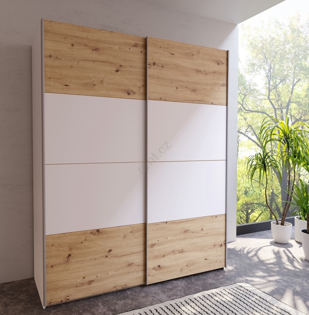 • Šatní skříň KARO 170x210 cm bílá/dub artisan