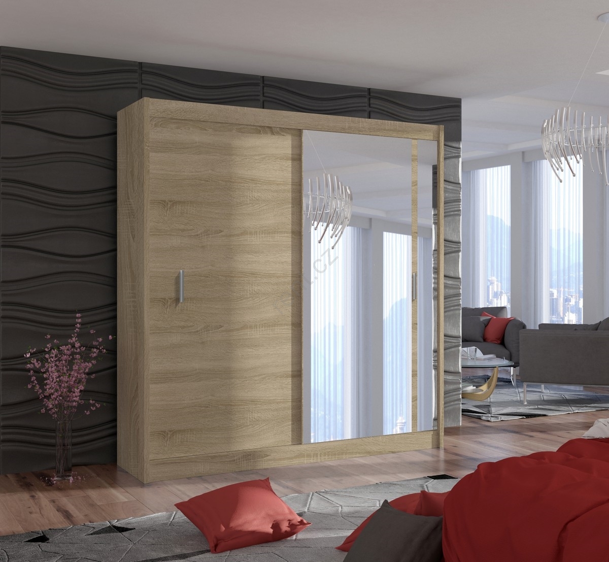 • Šatní skříň se zrcadlem SABRINA 203x215 cm dub sonoma