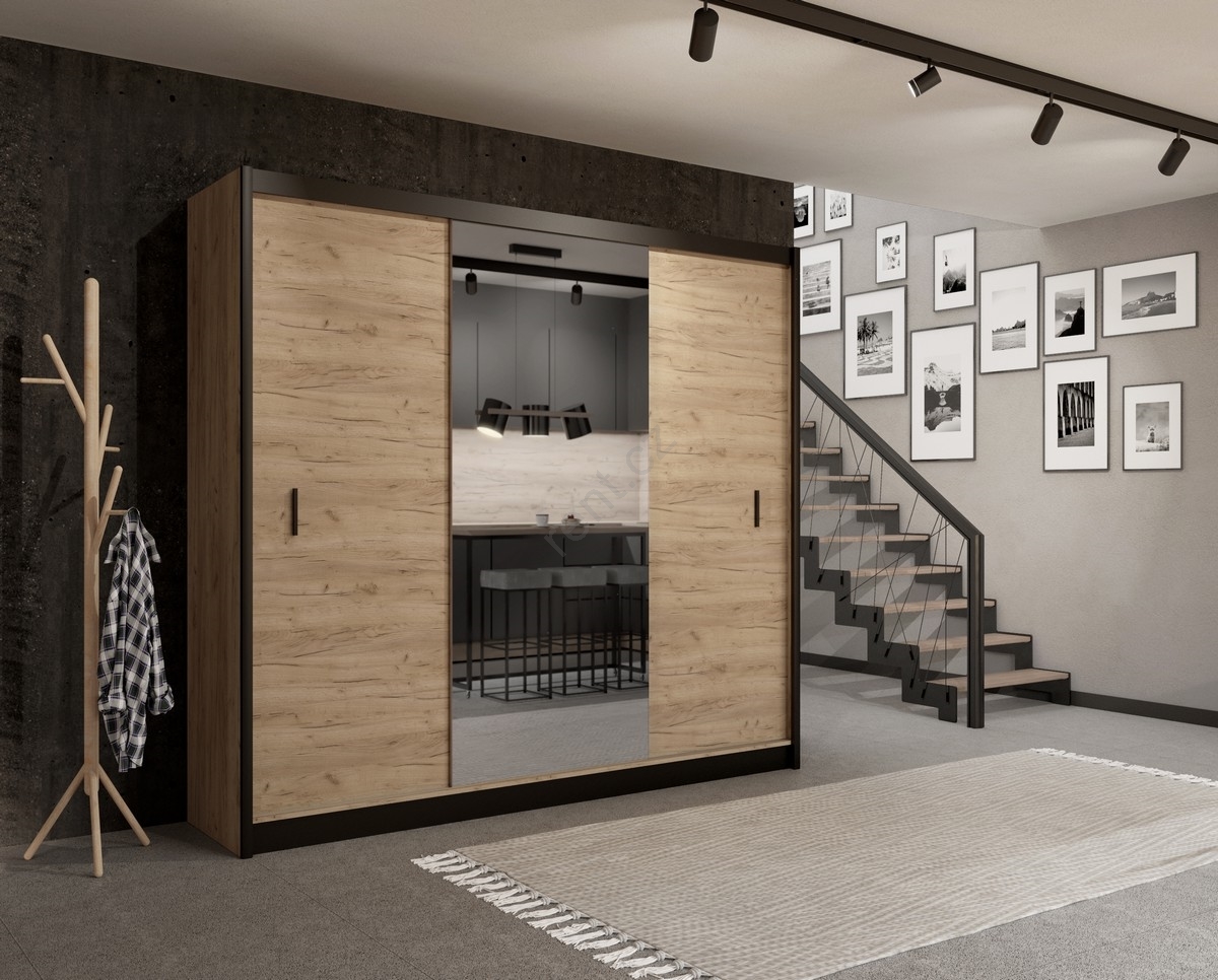 • Šatní skříň se zrcadlem MIRO 250x215 cm dub craft/černá