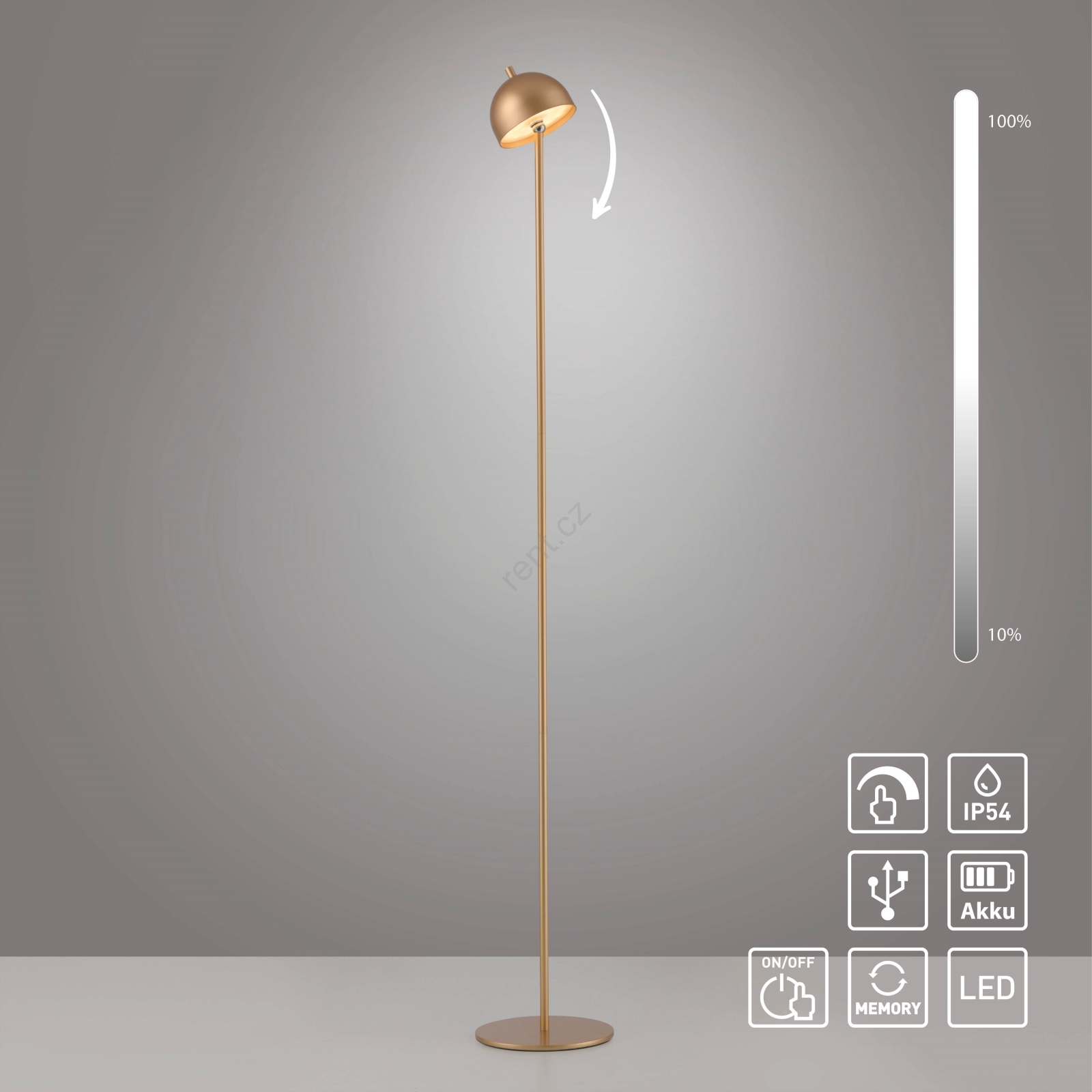 • Schöner Wohnen 19245-12 - LED Stmívatelná dotyková nabíjecí venkovní stojací lampa BELLIS LED/2,5W/5V 2600 mAh IP54 zlatá