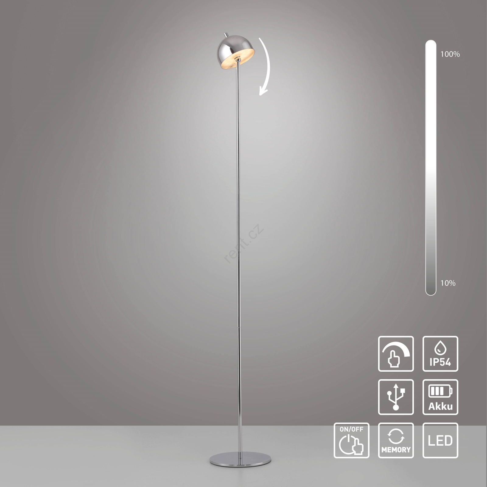 Schöner Wohnen 19245-17 - LED Stmívatelná dotyková nabíjecí venkovní stojací lampa BELLIS LED/2,5W/5V 2600 mAh IP54 lesklý chrom