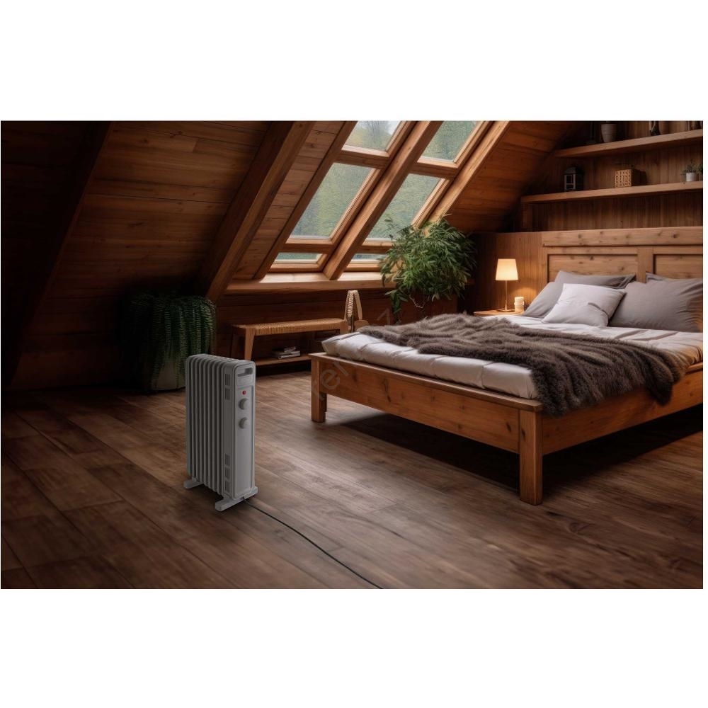 • Elektrický olejový radiátor s 9 žebry vhodný pro místnosti 10-18 m².