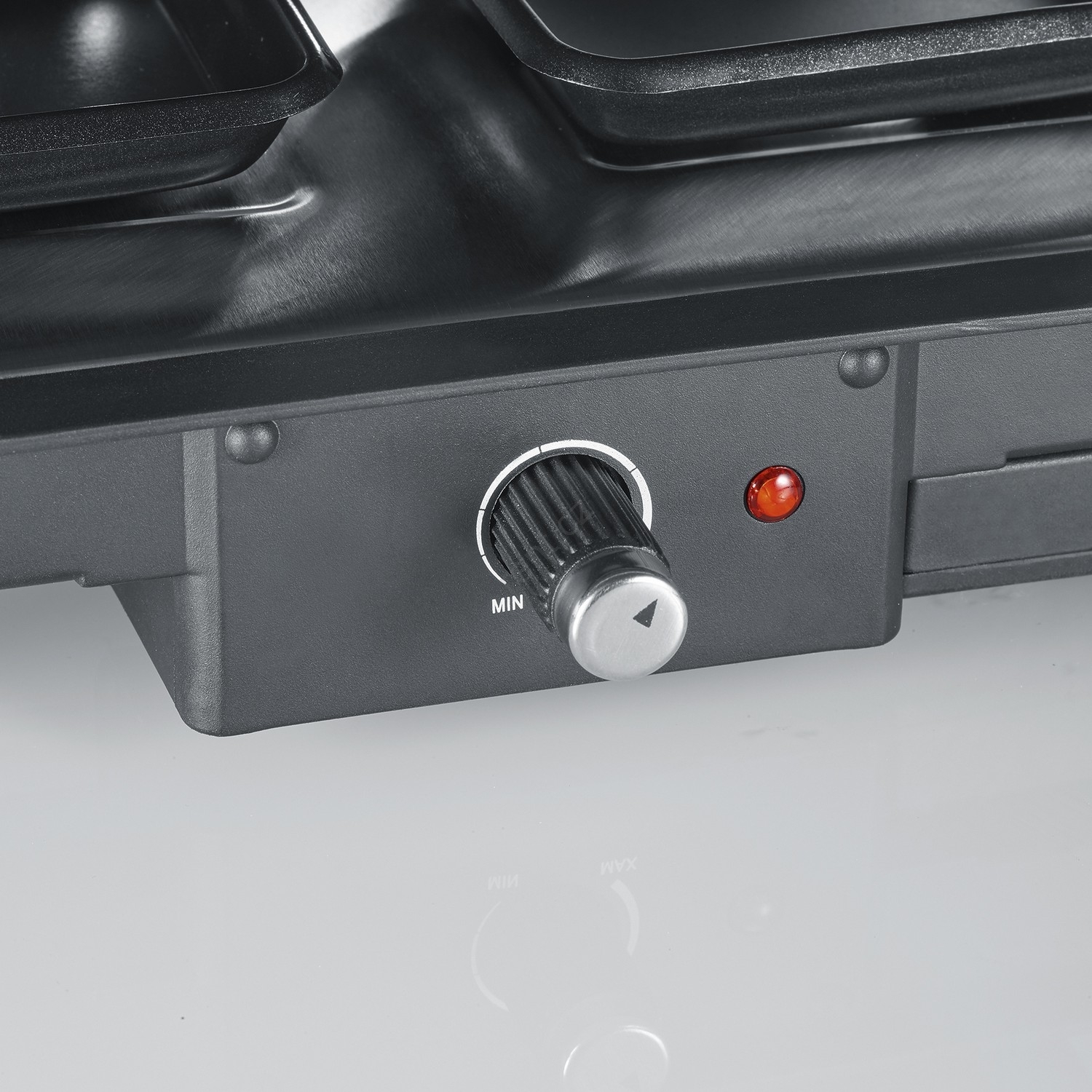 • Raclette gril je vybaven extra velkým přírodním grilovacím kamenem pro mimořádně dlouhé uchování tepla, což vede k jemně grilovanému pokrmu, který je na povrchu křehký a uvnitř šťavnatý.
