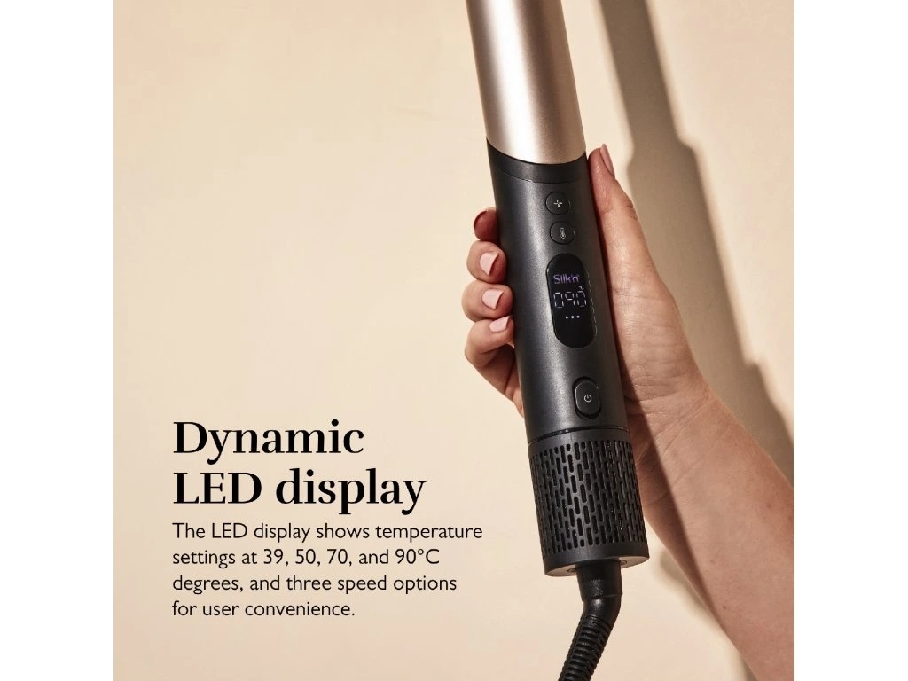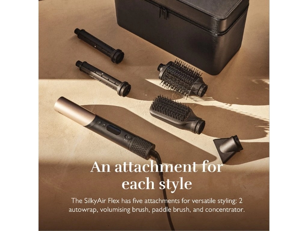 • Silk'n SilkyAir Flex je univerzální stylingový nástroj, který se díky speciální funkci "Flex" transformuje z výkonného vysoušeče vlasů na multifunkční stylingové zařízení s pěti různými nástavci.