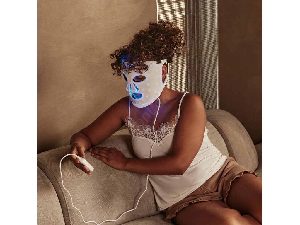 • Tato maska využívá červené, modré, žluté a fialové LED světlo speciálně vyvinuté k řešení řady problémů pleti, včetně známek stárnutí, akné a suché pleti.