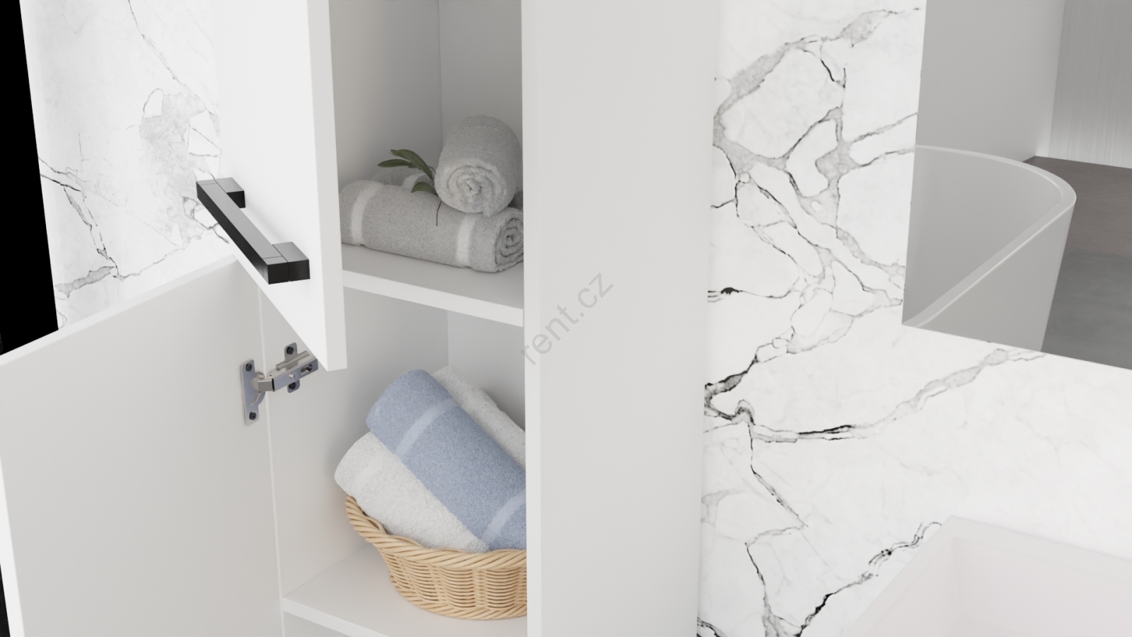 • Vysoká skříň poskytuje dostatek úložného místa díky několika snadno přístupným policím.