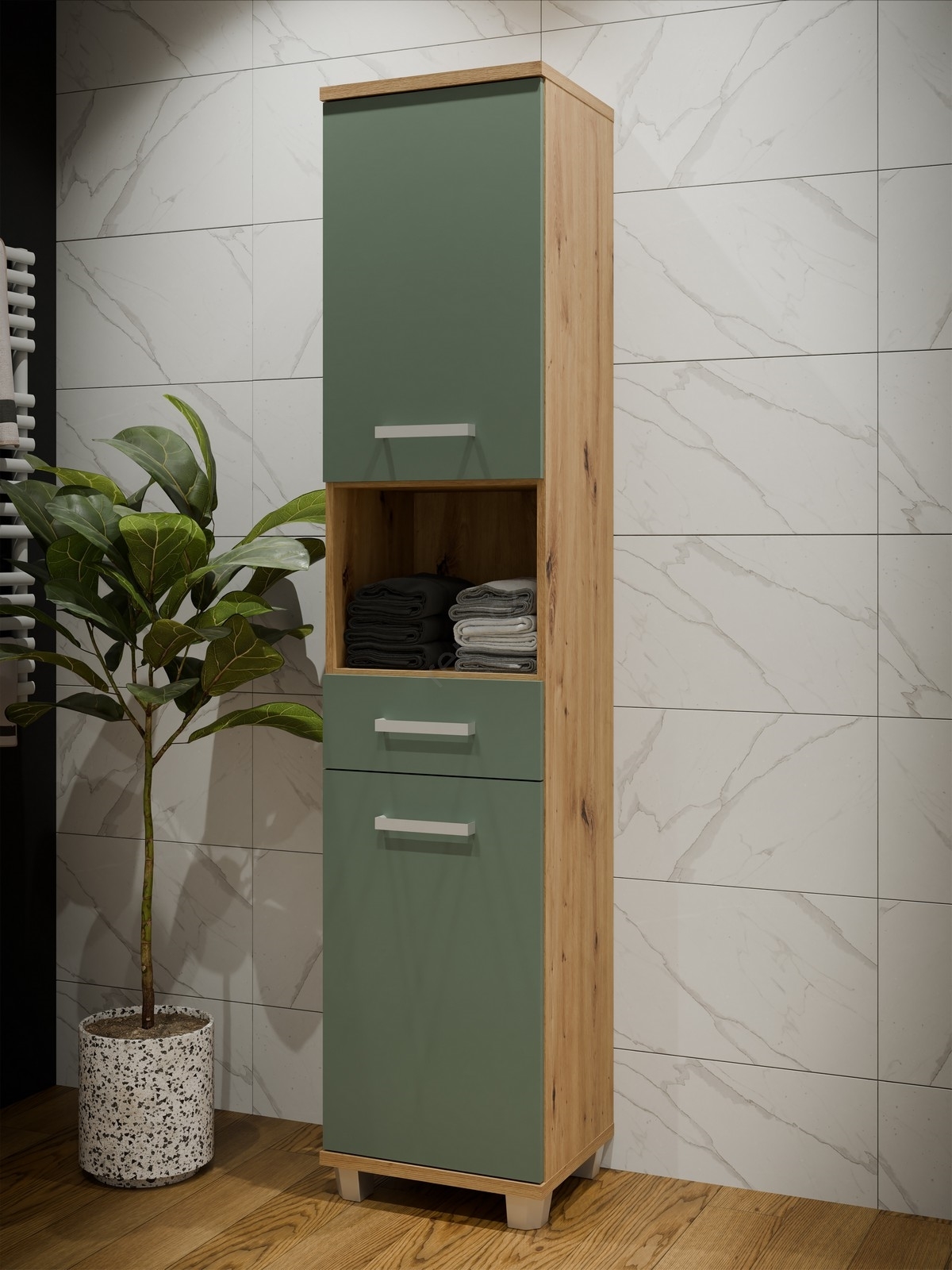 • Koupelnová skříňka VENOM zelená/dub artisan