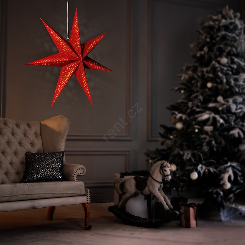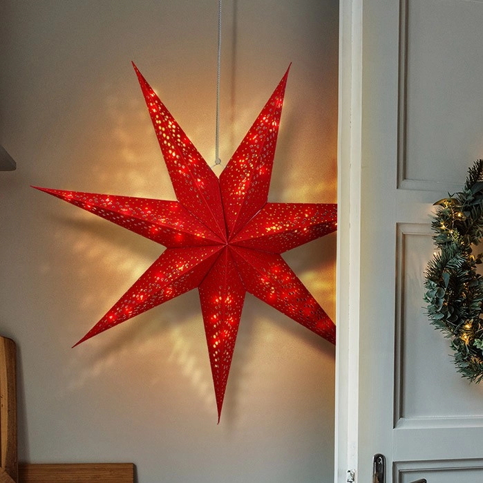 • Velká červená vánoční hvězda s LED řetězem s diodami.