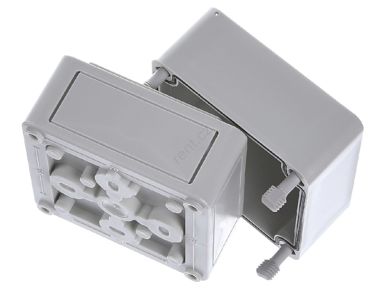 • Technická krabice v šedé barvě.