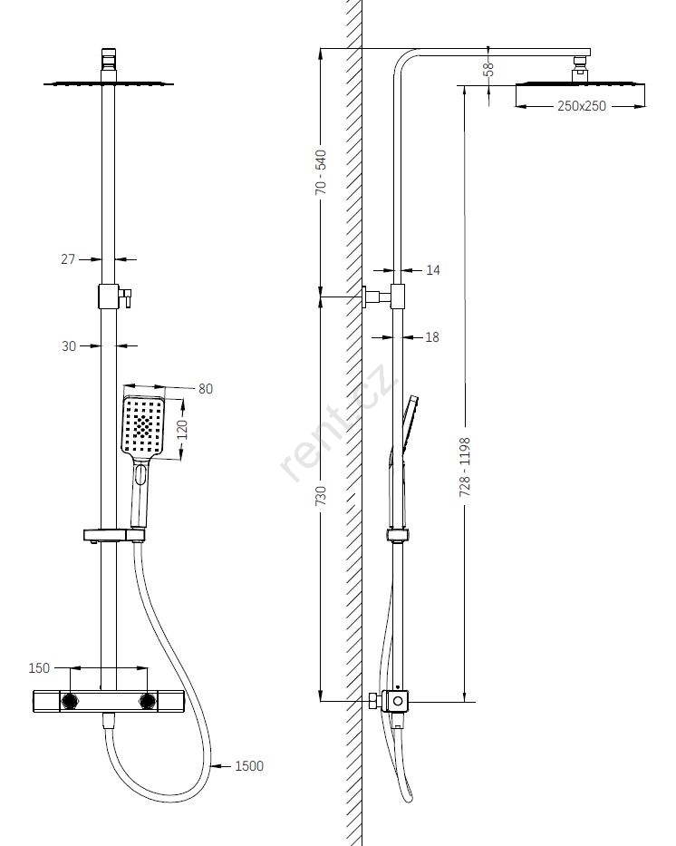 • Set se skládá z termostatické baterie z masivní mosazi.