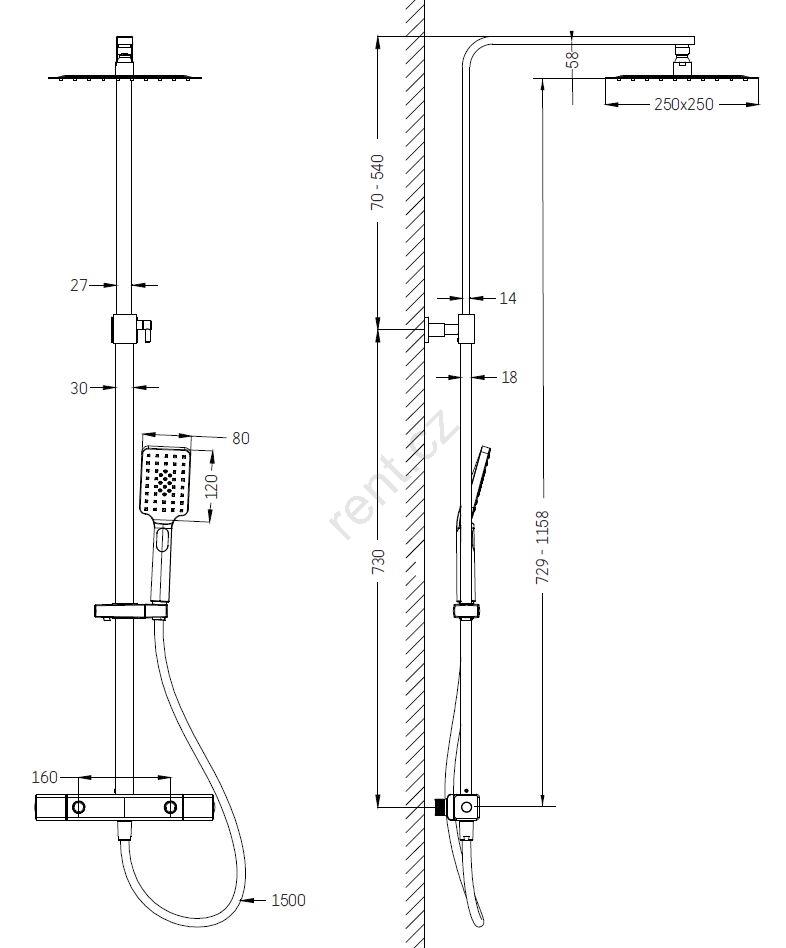 • Set se skládá z termostatické baterie z masivní mosazi.