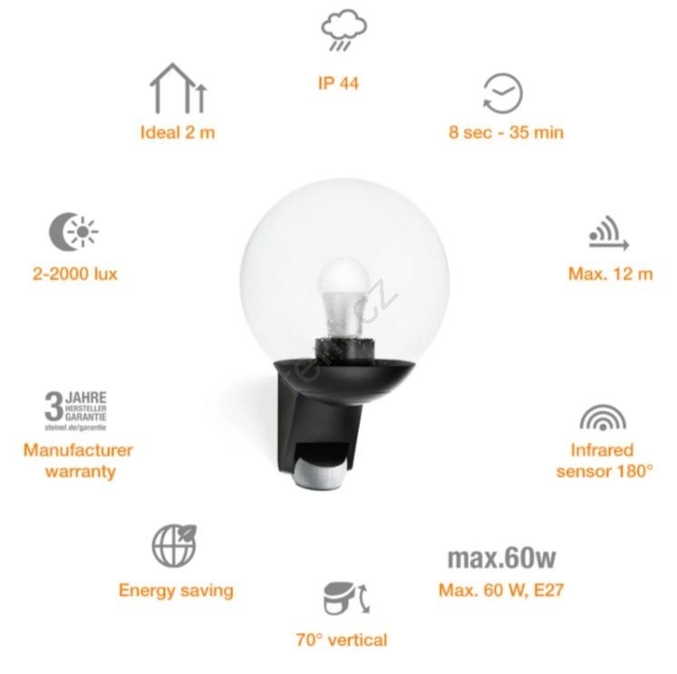 • STEINEL 005535 - Venkovní nástěnné svítidlo se senzorem L585S 1xE27/60W černá IP44