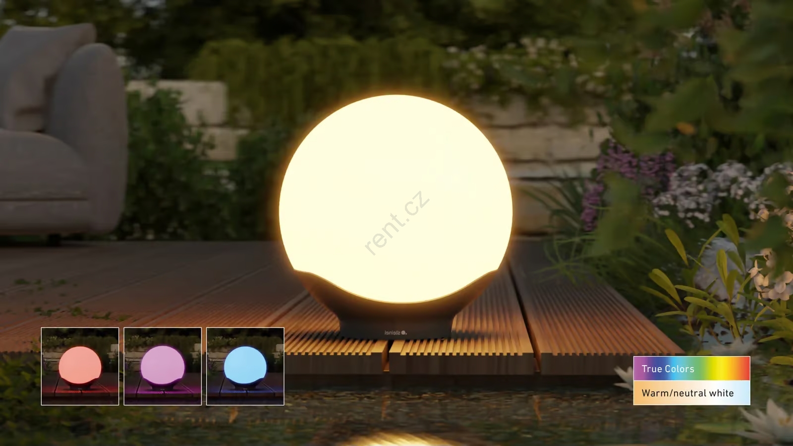• Moderní 24V zahradní LED svítidlo (koule) s integrovaným senzorem soumraku.