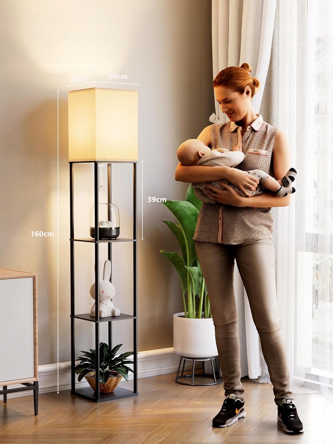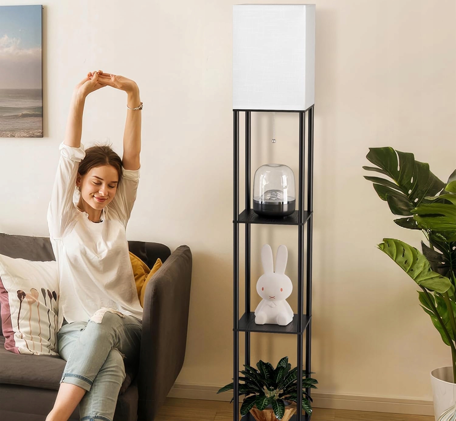 Stojací lampa s poličkami 1xE27/40W/230V černá/bílá