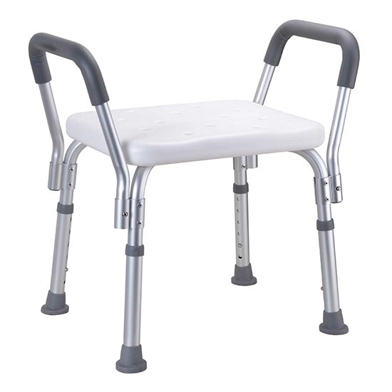• Stolička do sprchy s područkami pro bezpečné a pohodlné sezení.