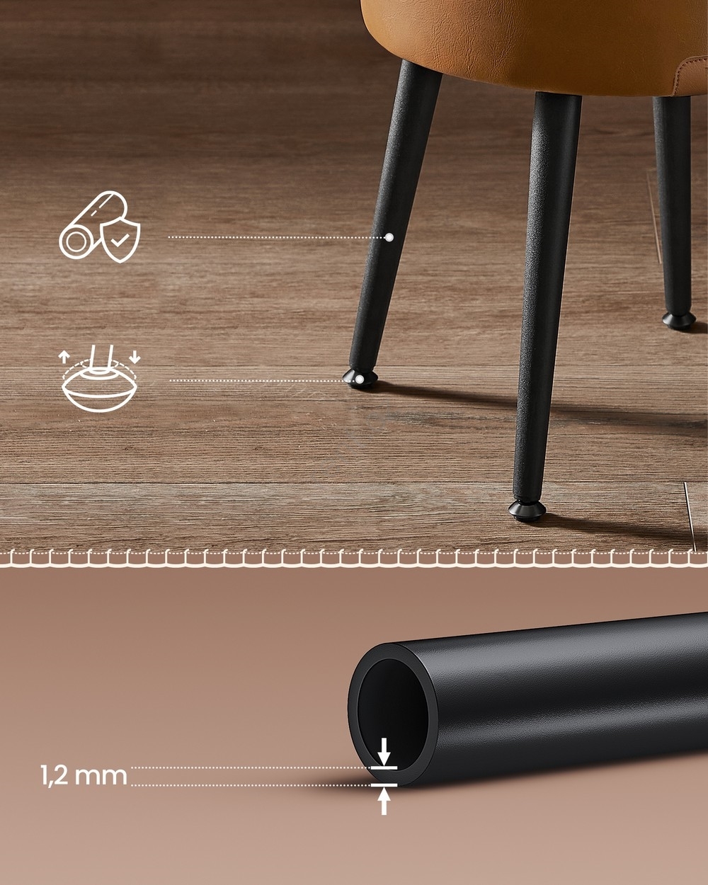 • Elegantní ocelové nohy s nastavitelnými kloubovými nožičkami dodávají moderní vzhled, unesou až 150 kg, a zároveň zajišťují stabilitu a dlouhou životnost.