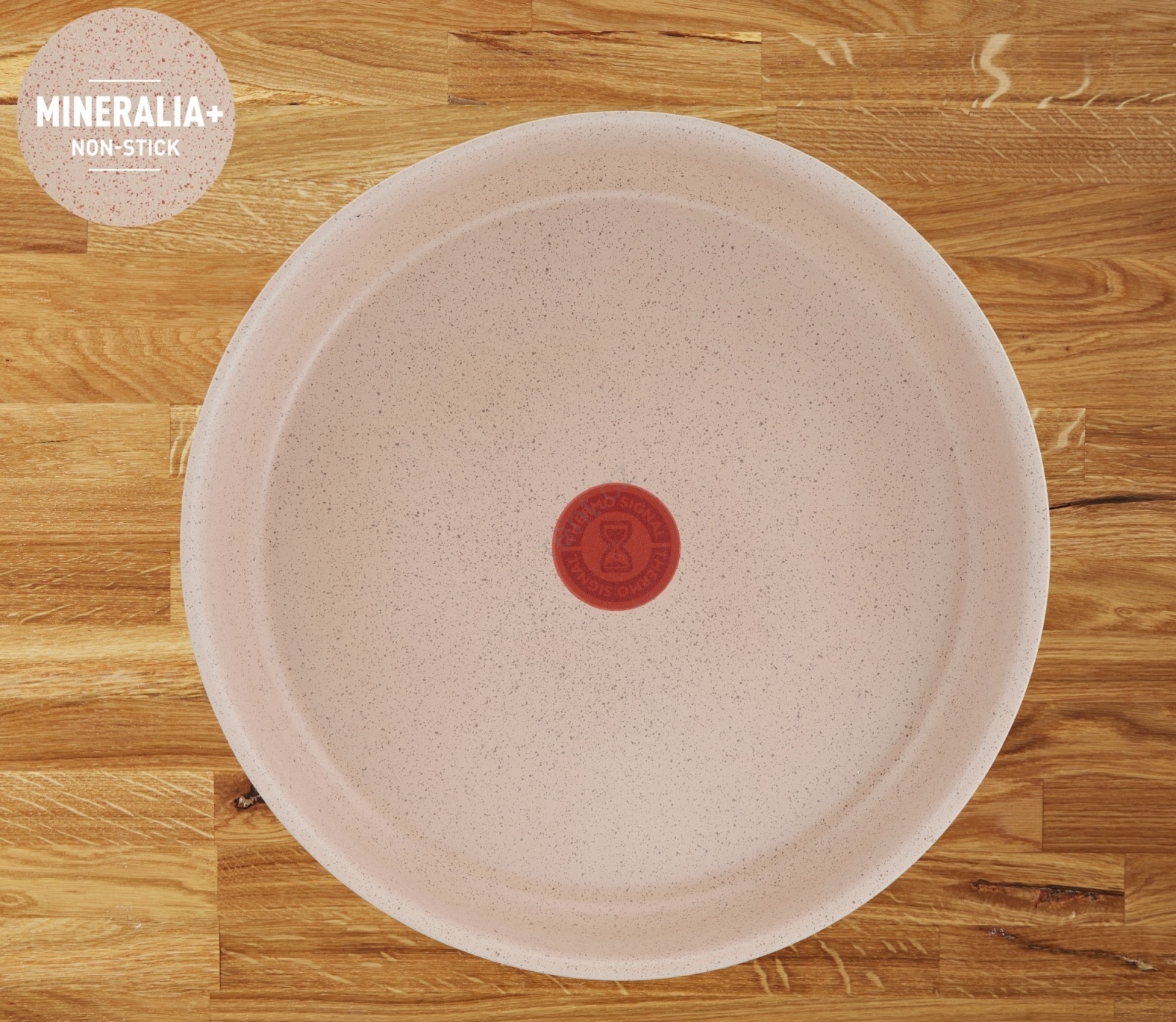 • Vnitřní povrch je opatřen nepřilnavou úpravou Mineralia+, která umožňuje vaření s minimem tuku a usnadňuje čištění.