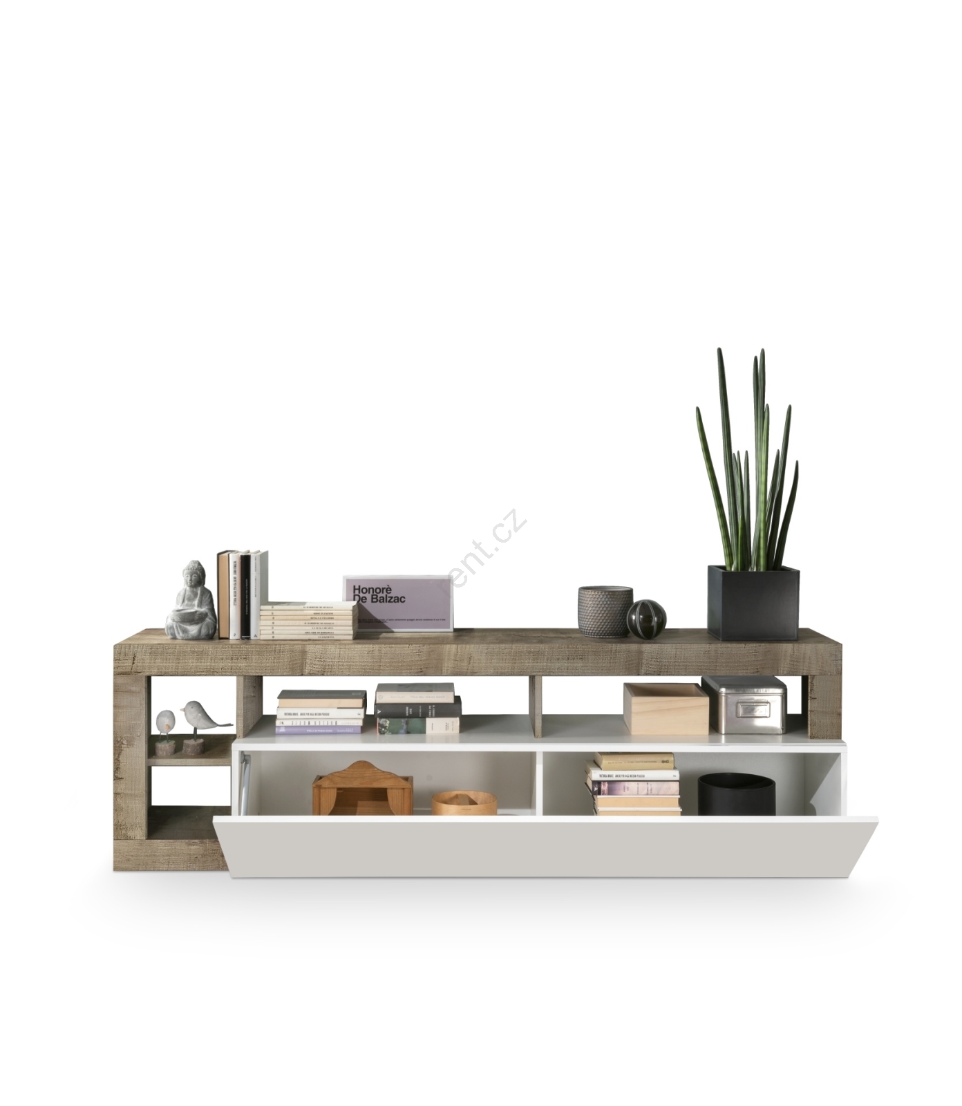 • Spodní přihrádka a otevřené police nabízí prostor pro knihy, dekorace a domácí potřeby.