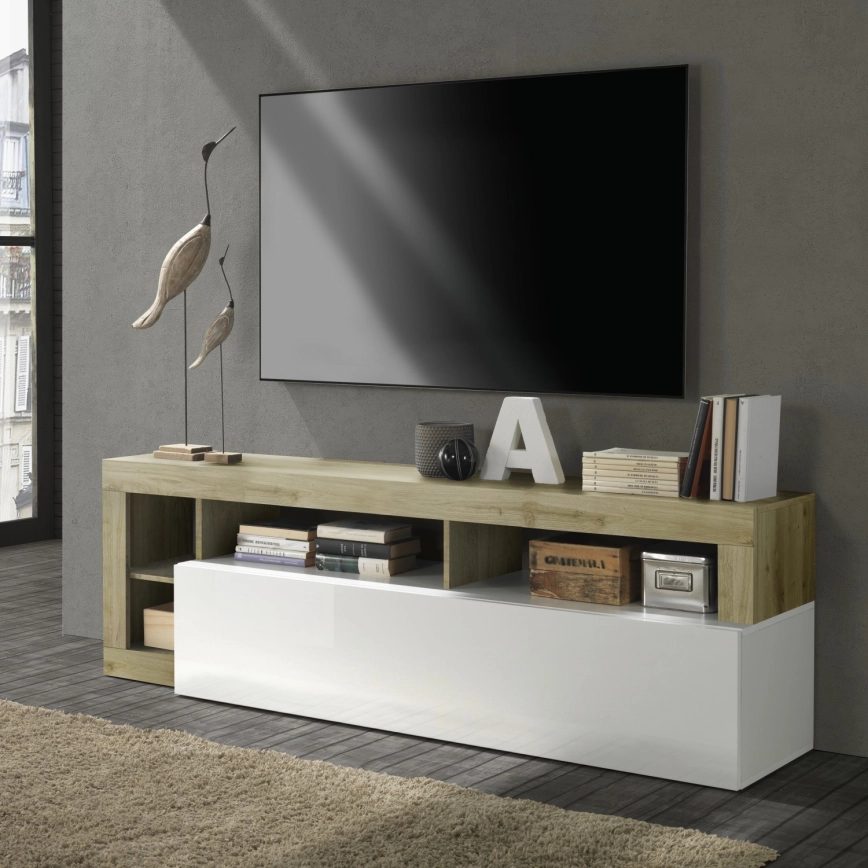 Televizní stolek LENOR 184x42 cm bílá/světlý dub