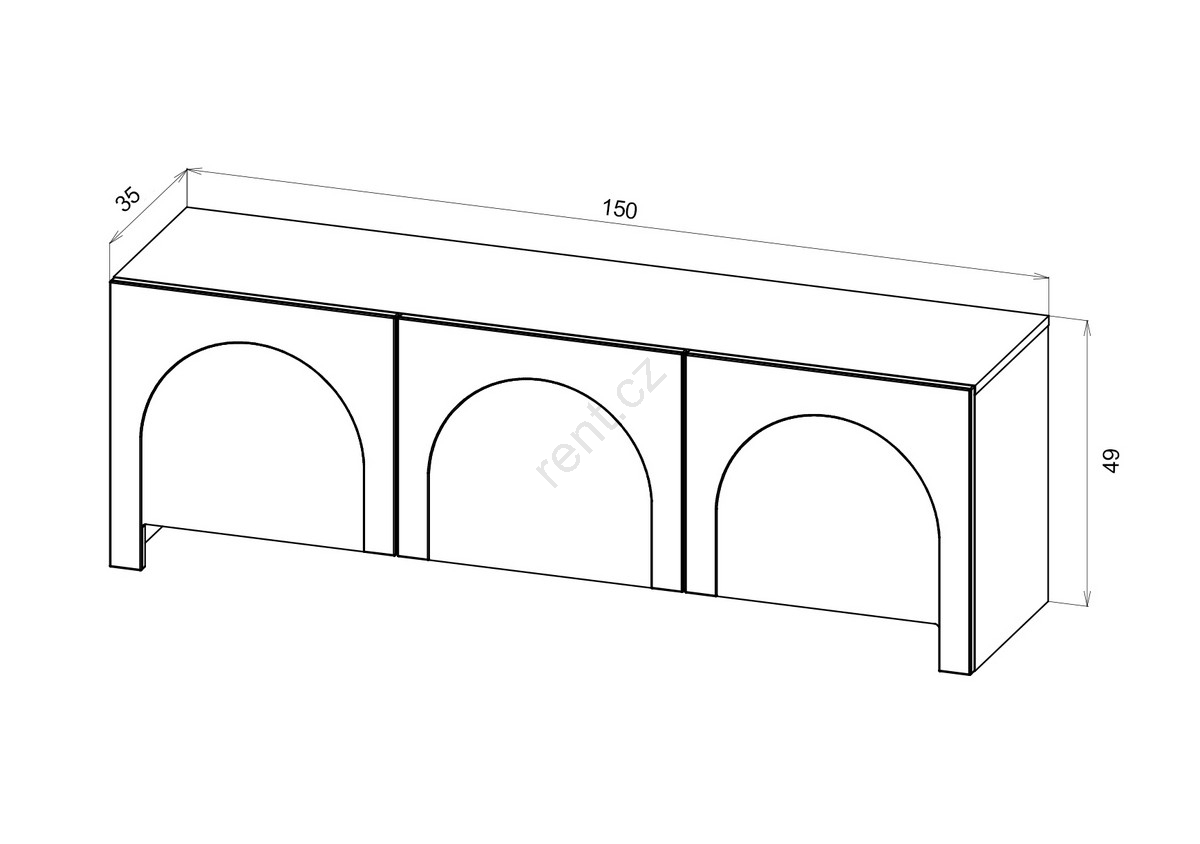• Má tři dvířka, každé s ozdobným klenutým detailem, který dodává nádech elegance.