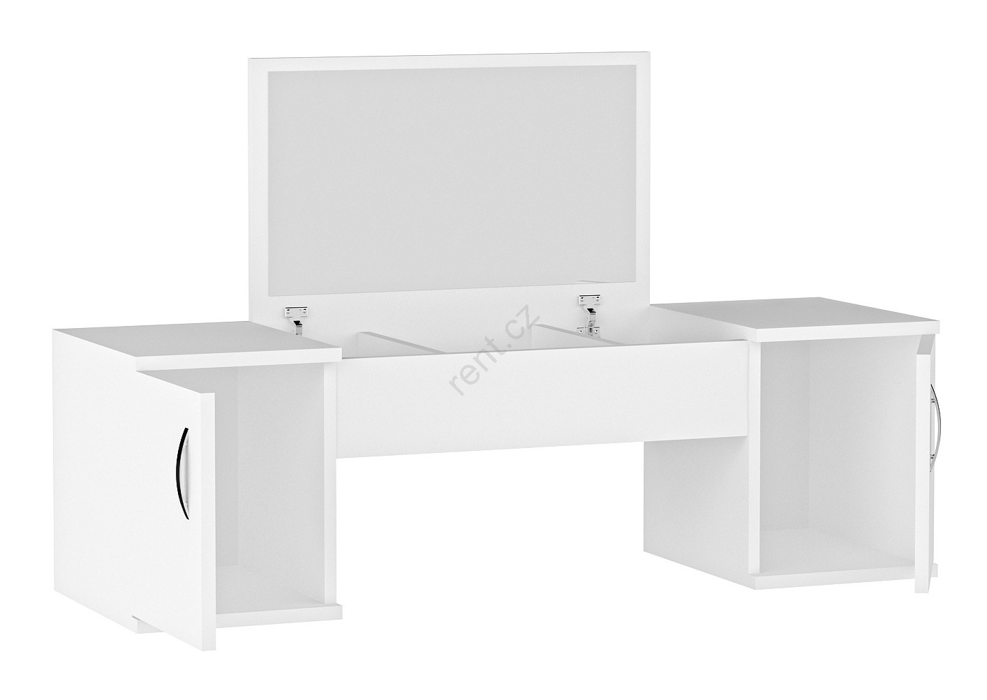 • Disponuje dvěma bočními skříňkami a úložným prostorem uprostřed.