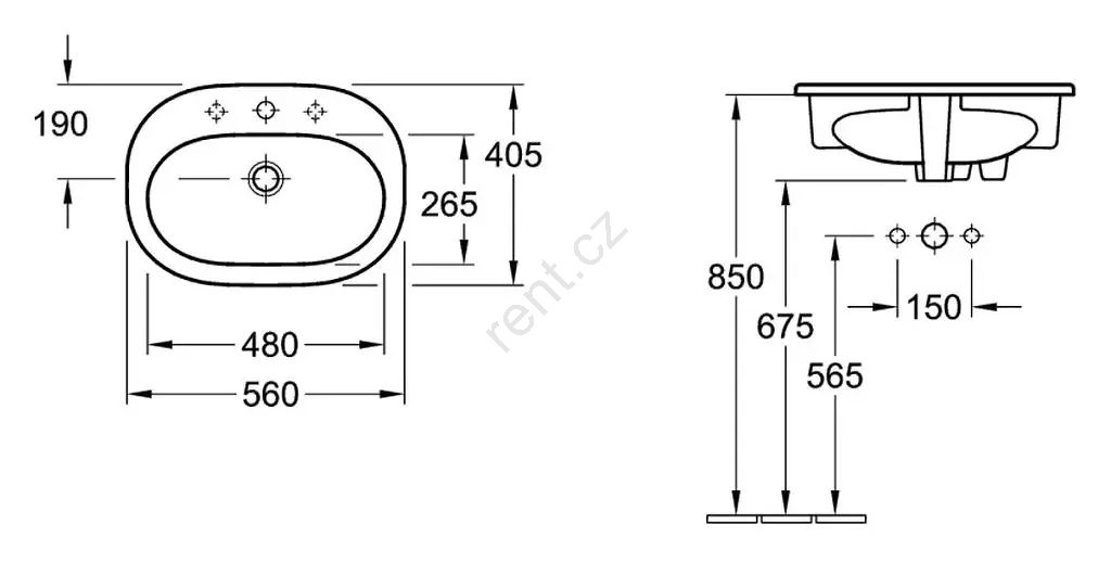 Villeroy & Boch 41615601 - Zápustné umyvadlo O.NOVO 56x40,5 cm keramika/bílá
