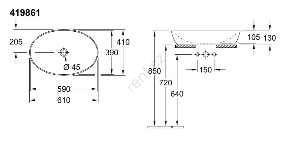 • Umyvadlová baterie a výpusť nejsou součástí balení.