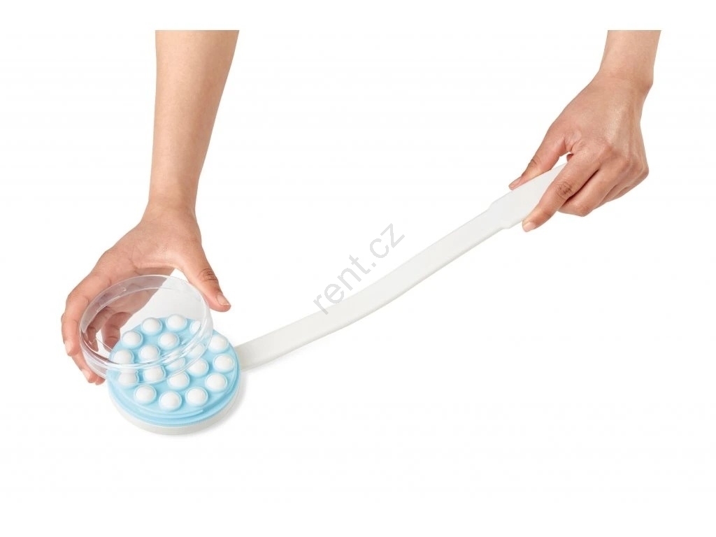 • Díky ergonomicky prodloužené rukojeti se uživatel snadno dostane i na méně přístupná místa, jako jsou záda nebo dolní končetiny, bez nutnosti namáhavého ohýbání nebo natahování.