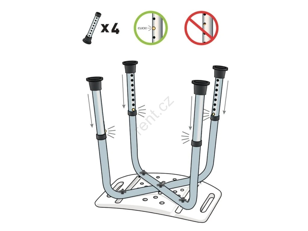 • Má odlehčené hliníkové nohy, které jsou výškově stavitelné.