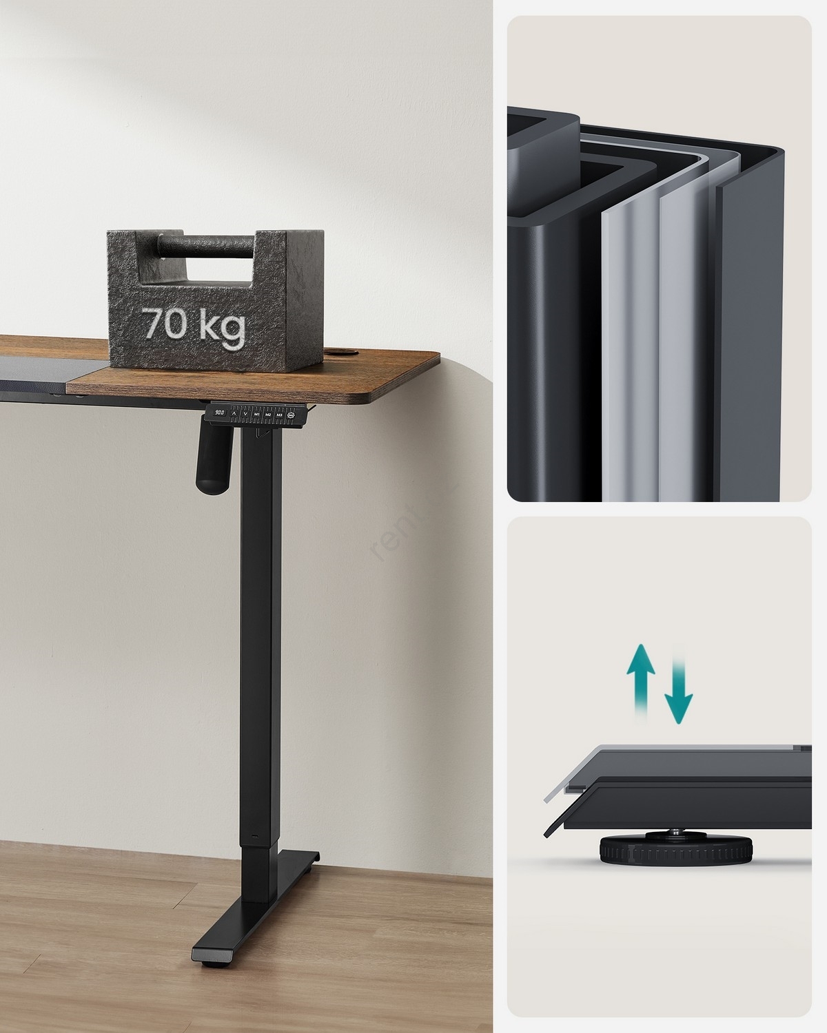• Tento elektrický stůl s robustním ocelovým rámem unese až 80 kg, je tichý s provozní hlučností nižší než 50 dB.