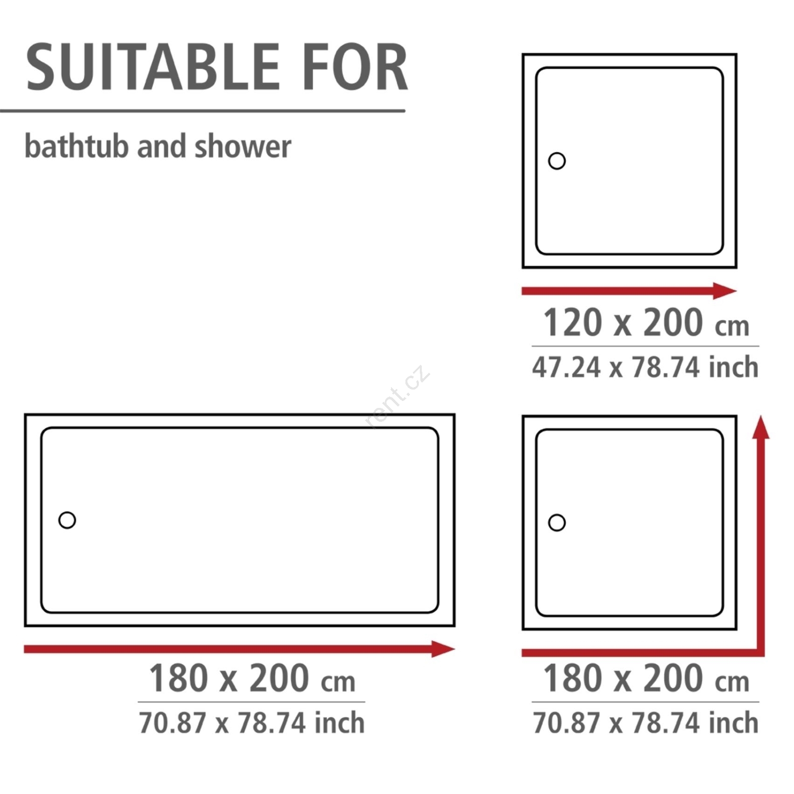 • Vhodný pro sprchu i vanu díky rozměrům 180 × 200 cm.