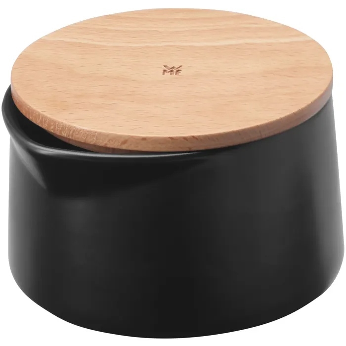• Čištění je snadné, přičemž kameninová nádoba je vhodná pro mytí v myčce nádobí, zatímco dřevěné víčko vyžaduje ruční mytí.