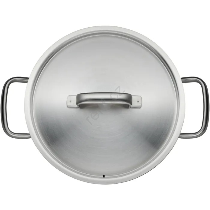 • Robustní nerezová poklice s integrovaným otvorem pro řízené uvolňování páry, což zabraňuje překypění.