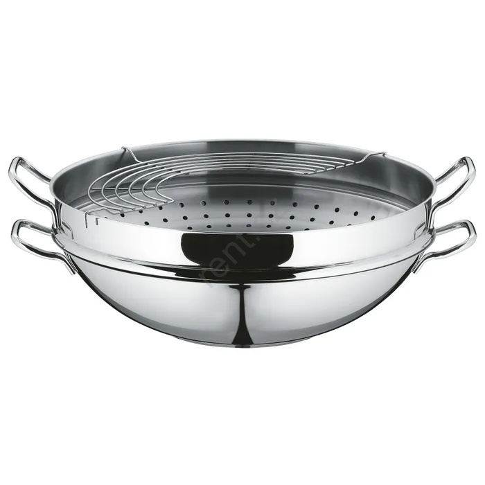 • Materiál Cromargan®: Wok pánev je vyrobena z leštěné nerezové oceli Cromargan® 18/10, která je rozměrově stabilní, odolná vůči kyselinám a extrémně odolná proti poškrábání.