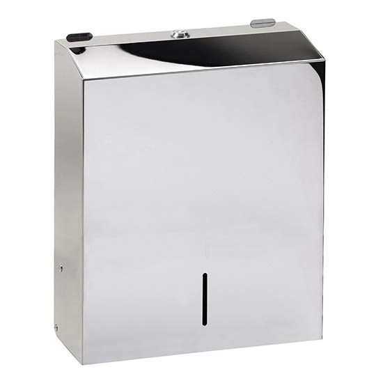 • Moderní zásobník na papírové ručníky z nerezové oceli s lesklou povrchovou úpravou.