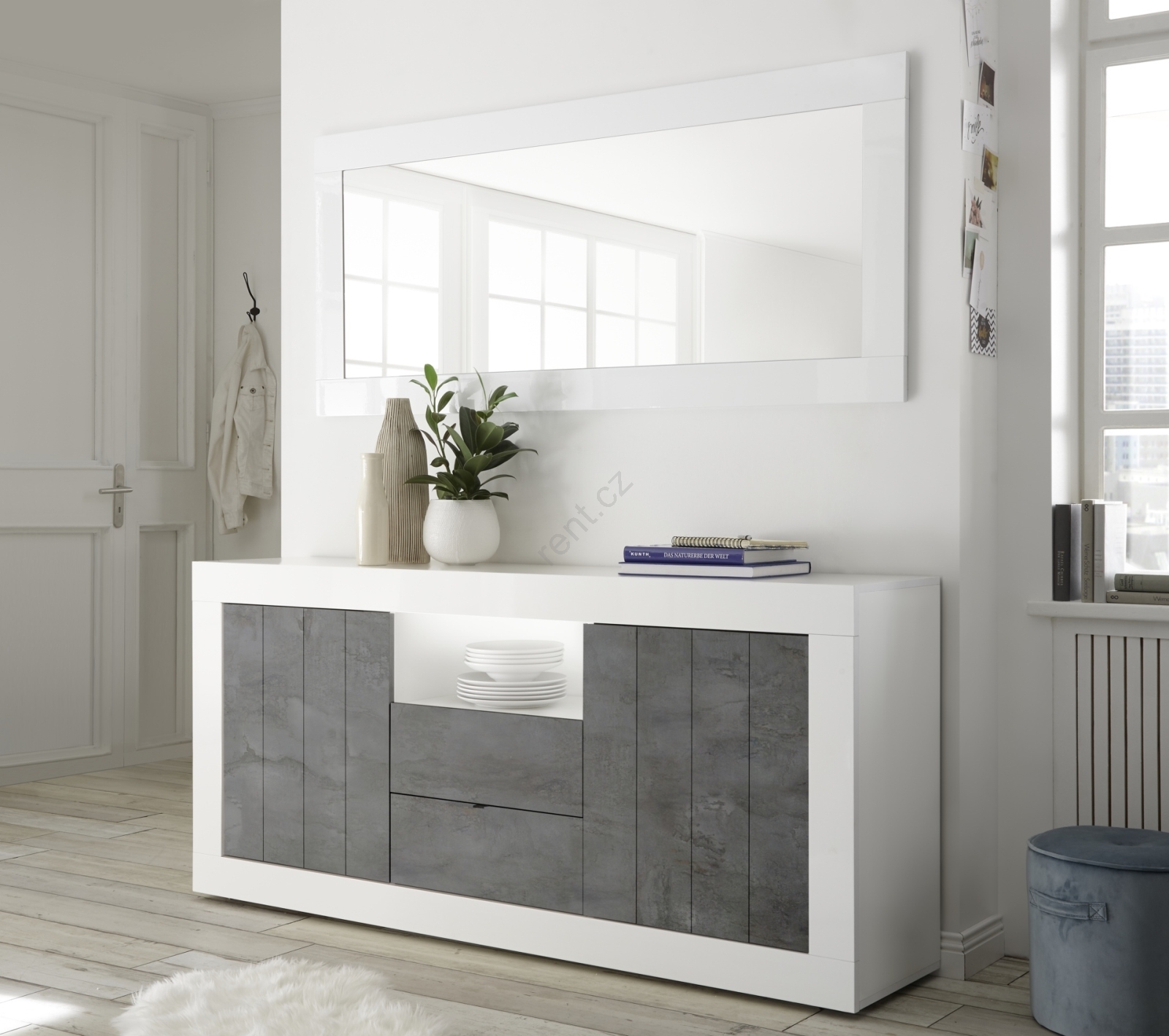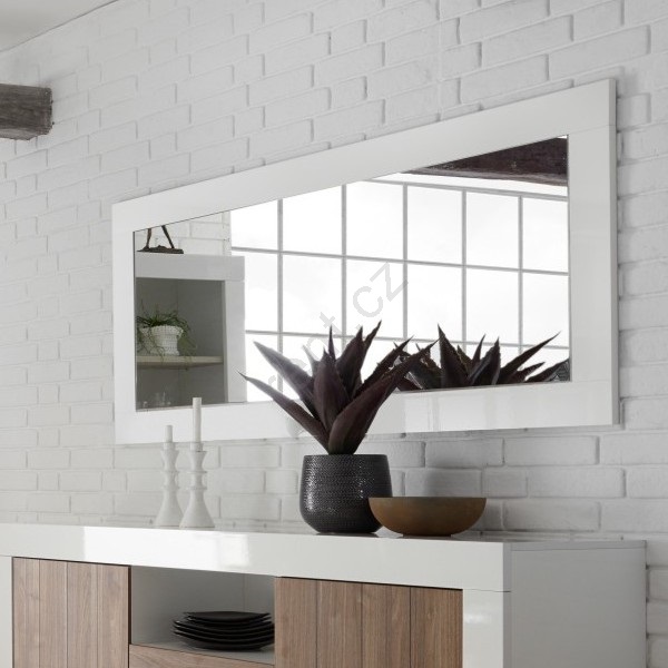 • Designové nástěnné zrcadlo s bílým rámečkem.