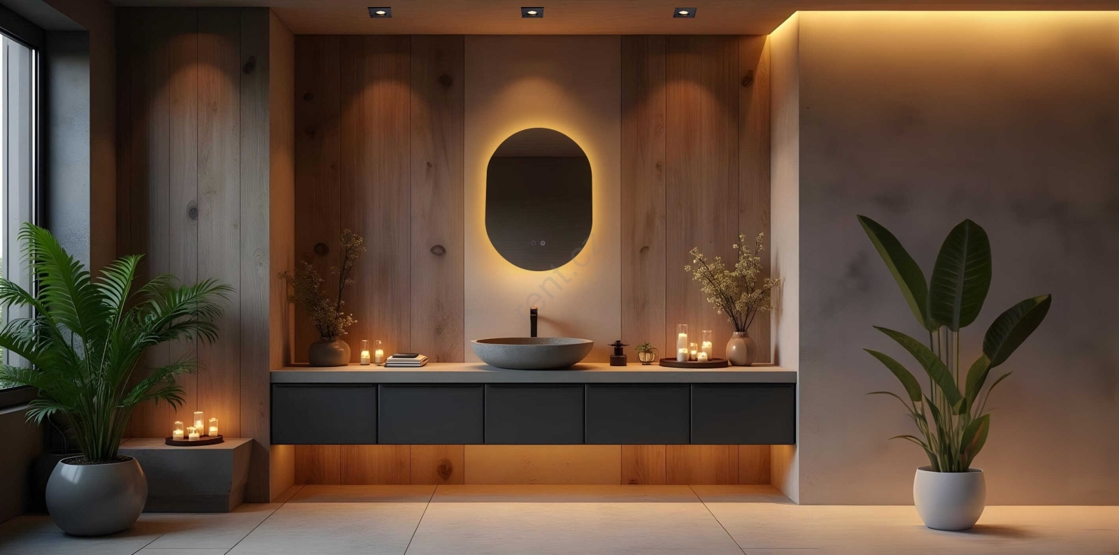 • Designové nástěnné zrcadlo s LED osvětlením.
